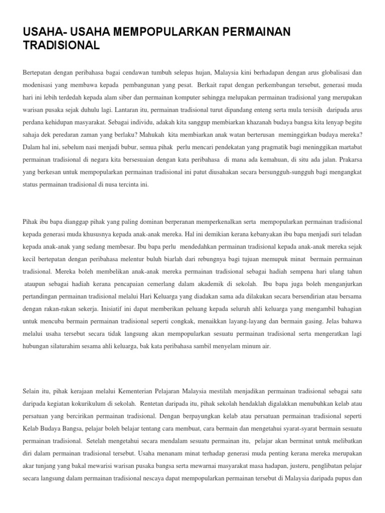 Karangan Usaha Mempopularkan Permainan Tradisional Tylerctzx